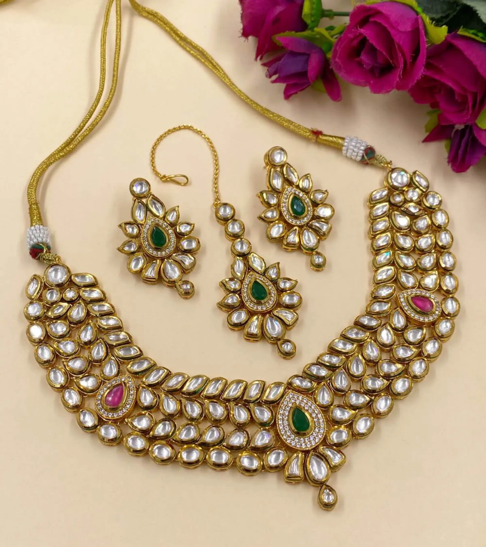 A symphony of precious stones and gold, Jadau jewelry reflects the art of meticulous handcrafting, perfect for regal occasions.