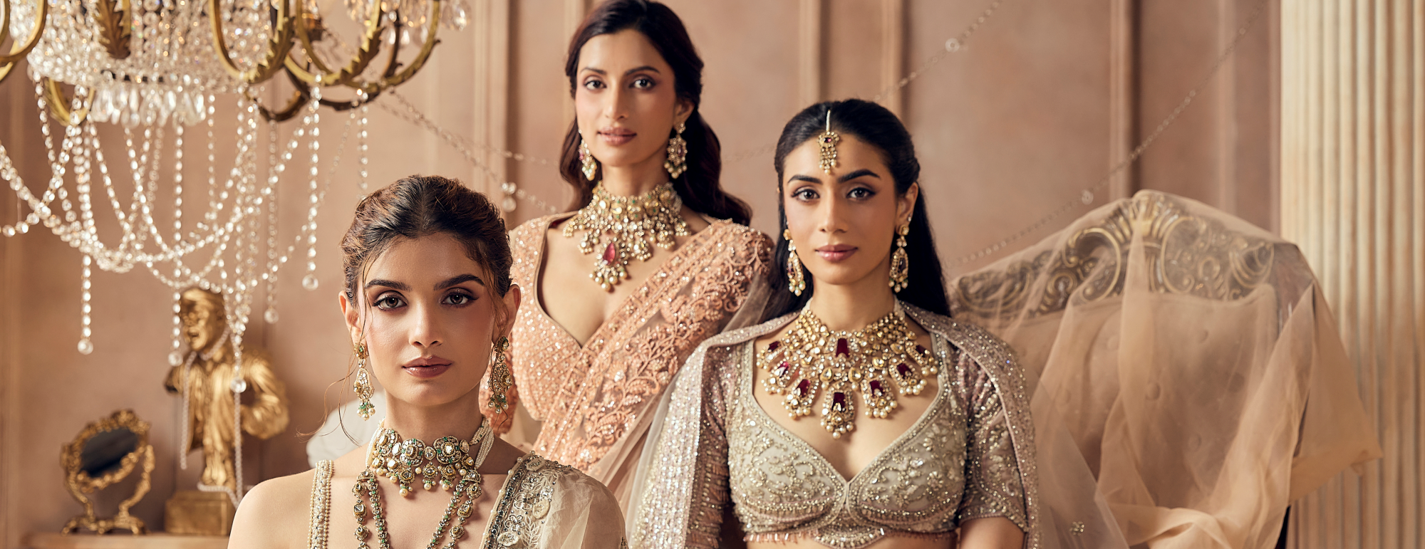 symphony of Gold, Diamond, Kundan, Polki and Heritage jewellery, crafted to celebrate the grandeur of Indian weddings. Each piece reflects timeless artistry, love, and trust blending tradition with modern elegance. Heirlooms for every swarnim beginning.