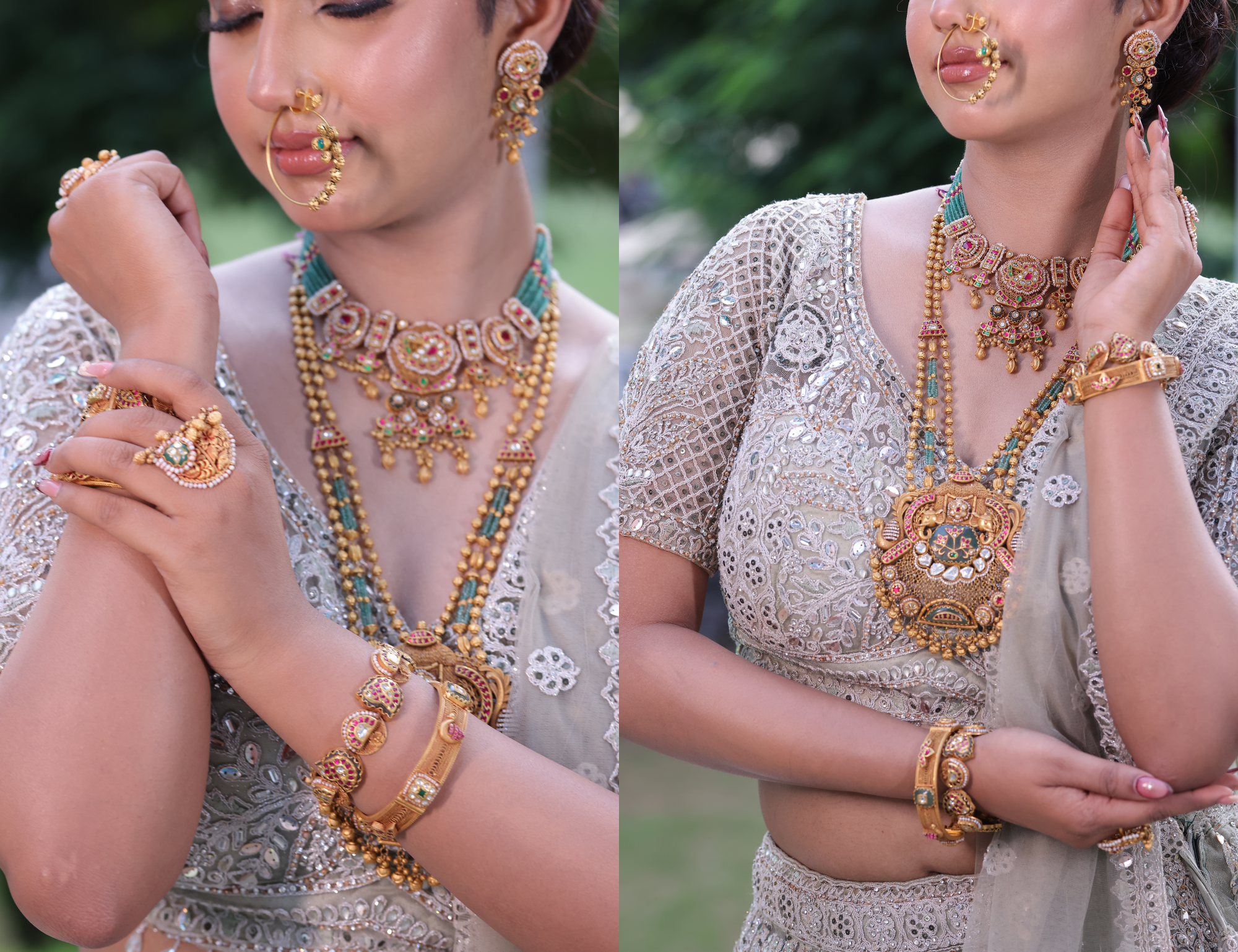 Each masterpiece in our Heritage Jewellery Collection is a tribute to India's regal artistry handcrafted over 40-50 days with more than 300 meticulous man hours devoted to every intricate detail. Every design tells a story of devotion, tradition, and timeless beauty, brought to life by master karigars who preserve the essence of royal craftsmanship.
